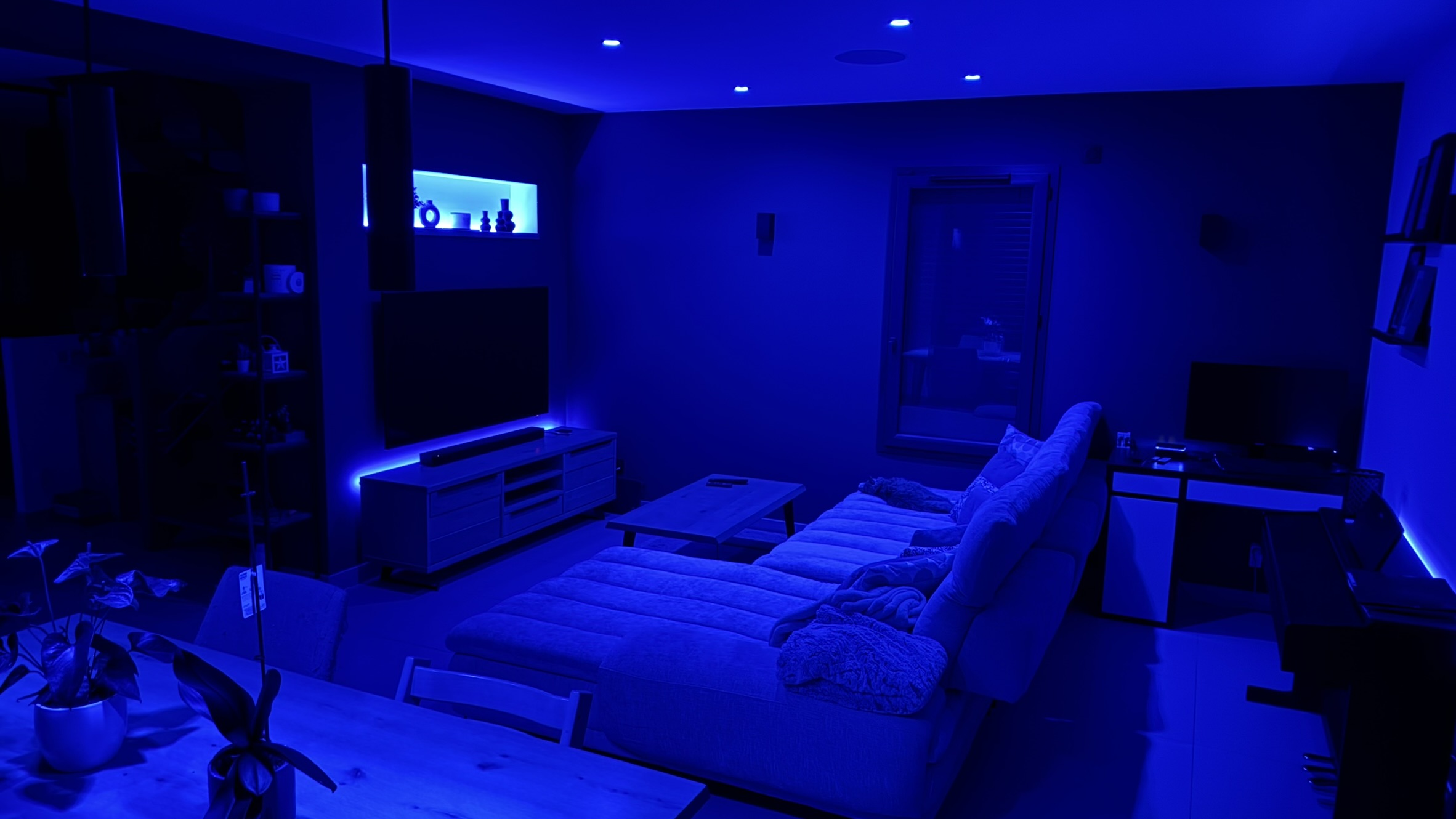 L’éclairage RGBW est au cœur de la personnalisation, avec des ambiances lumineuses adaptées aux moments de la journée et un ajustement automatique selon la présence et la lumière naturelle. Les capteurs de mouvement déclenchent l’éclairage, activent des scénarios comme le mode nuit ou l’alarme, et favorisent les économies d’énergie. Le suivi énergétique va plus loin : la maison analyse la production solaire, la consommation en temps réel et intègre les données EDF Tempo pour ajuster automatiquement ses comportements, réduisant ainsi les coûts.