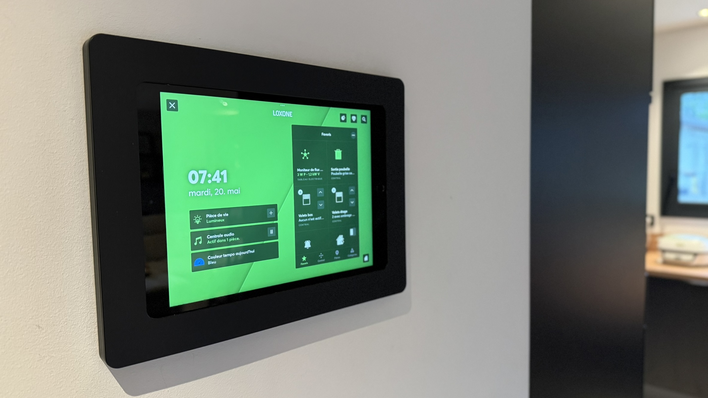 Enfin, l’expérience utilisateur est pensée dans les moindres détails : un interphone vidéo, des accès par badge NFC ou code temporaire, un système audio multiroom utilisé autant pour la musique que pour les alertes, et des interfaces Touch et Touch Pure Flex pour centraliser toutes les commandes. Un iPad mural complète le tout avec un tableau de bord global, donnant à la famille un contrôle simple, fluide et complet de leur maison intelligente.